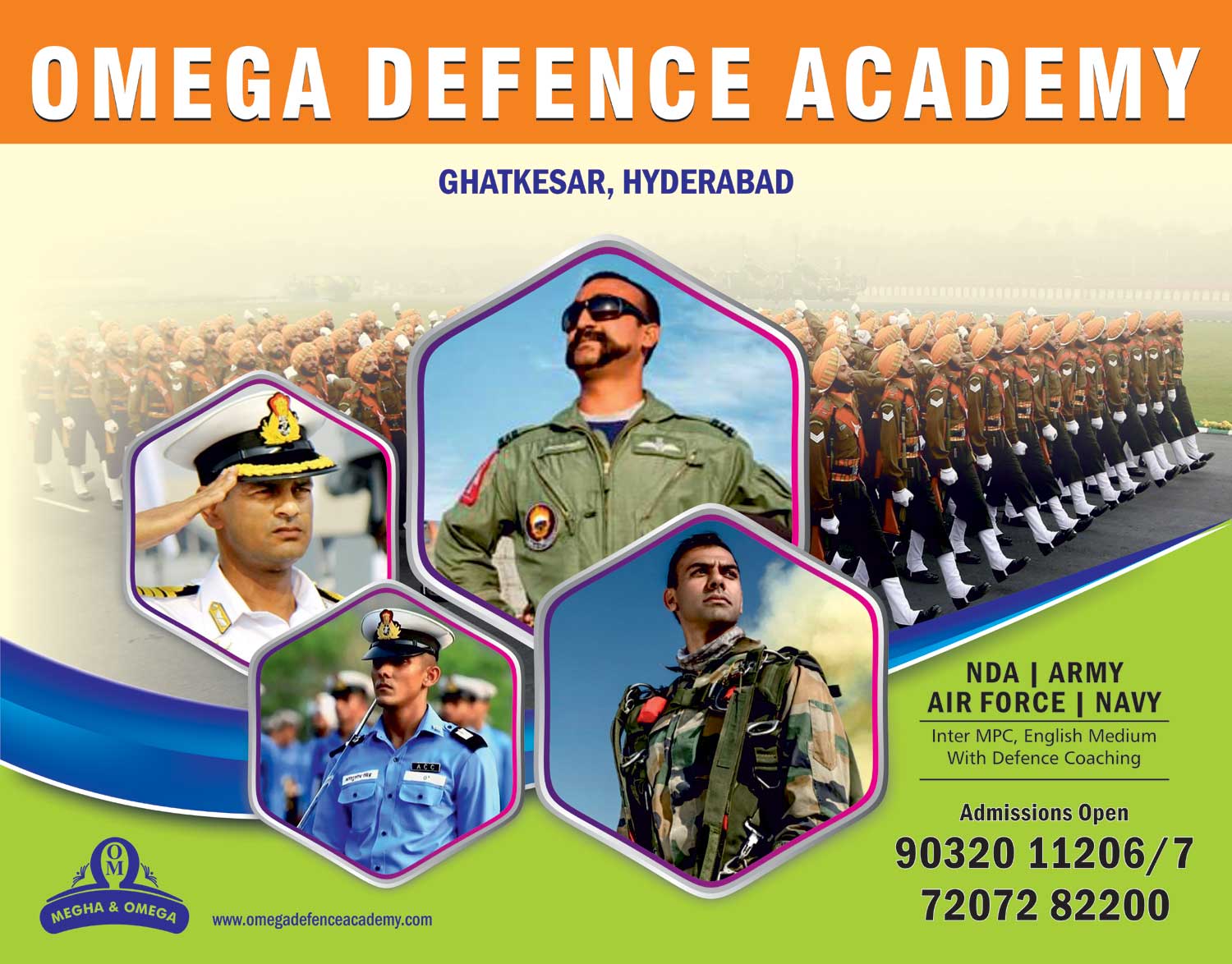 The secondary course pertains to 2 years Intermediate(MPC) from State Intermediate Board of Education with parallel free coaching for all Defence Oriented Courses.